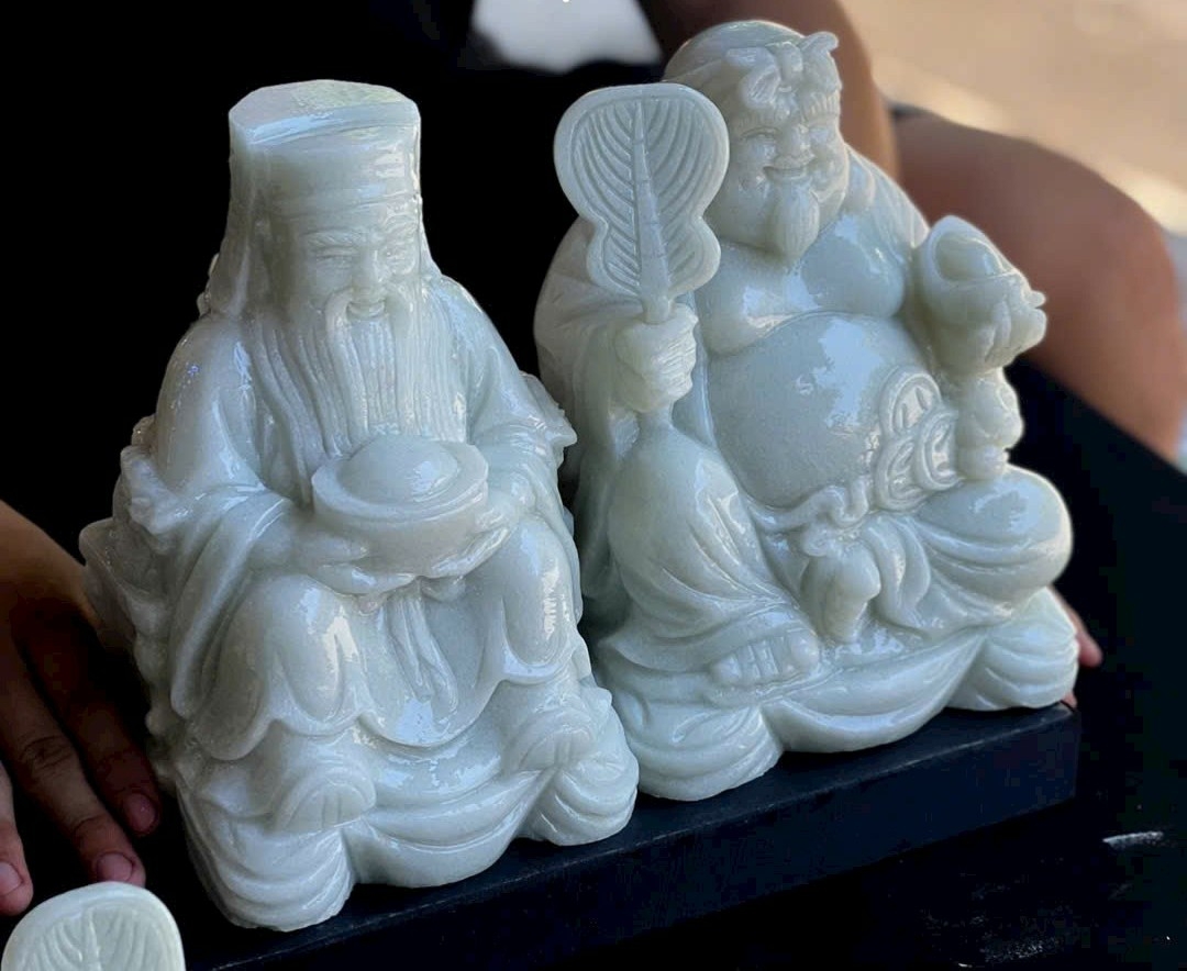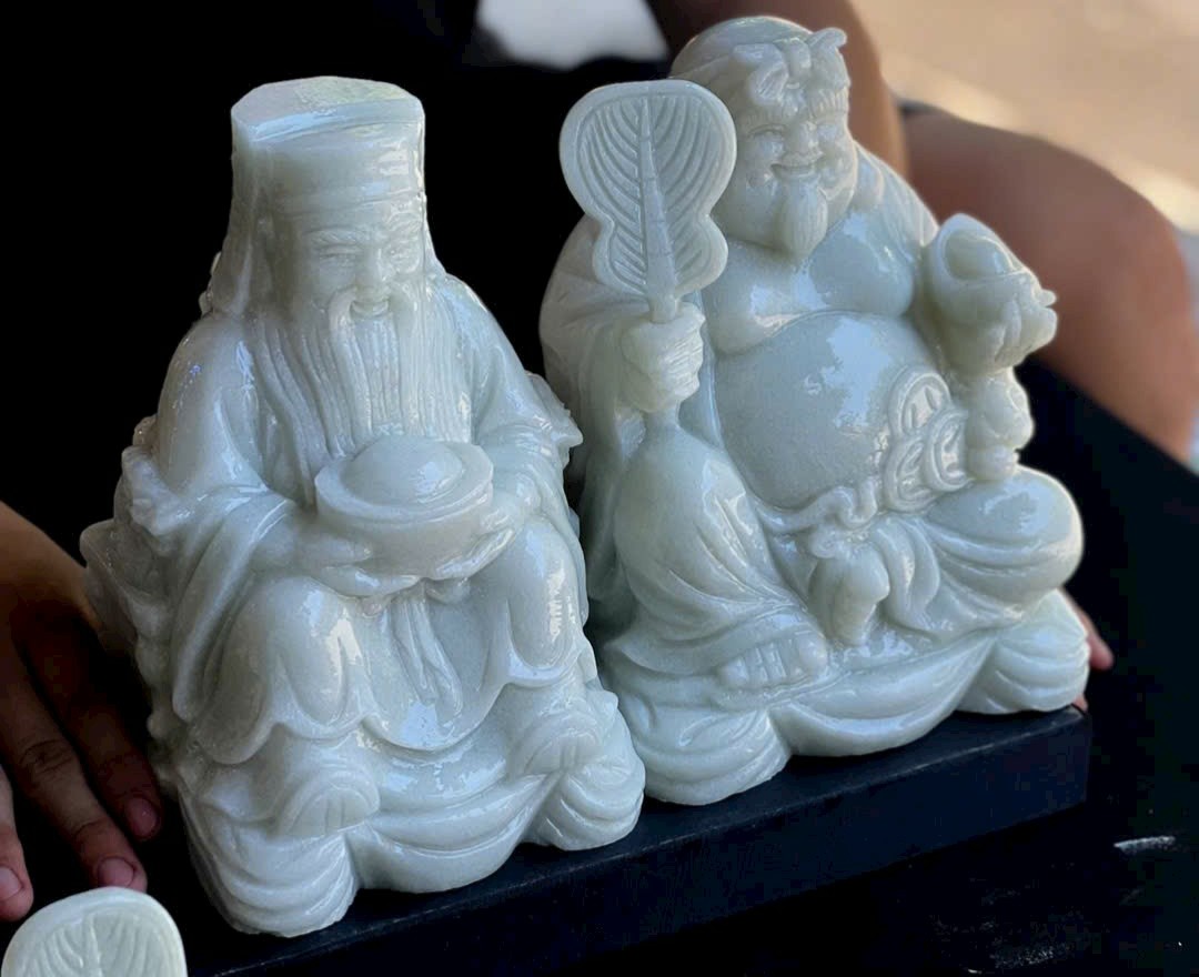 Bộ 2 ông thần tài thổ địa đá trắng nguyên khối cao 20cm Là vật phẩm phong thuỷ chiêu tài lộc may mắn