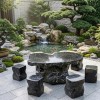 Bộ bàn ghế đá cẩm vân gồm 1 bàn và 6 đôn, dk 1.5m T395