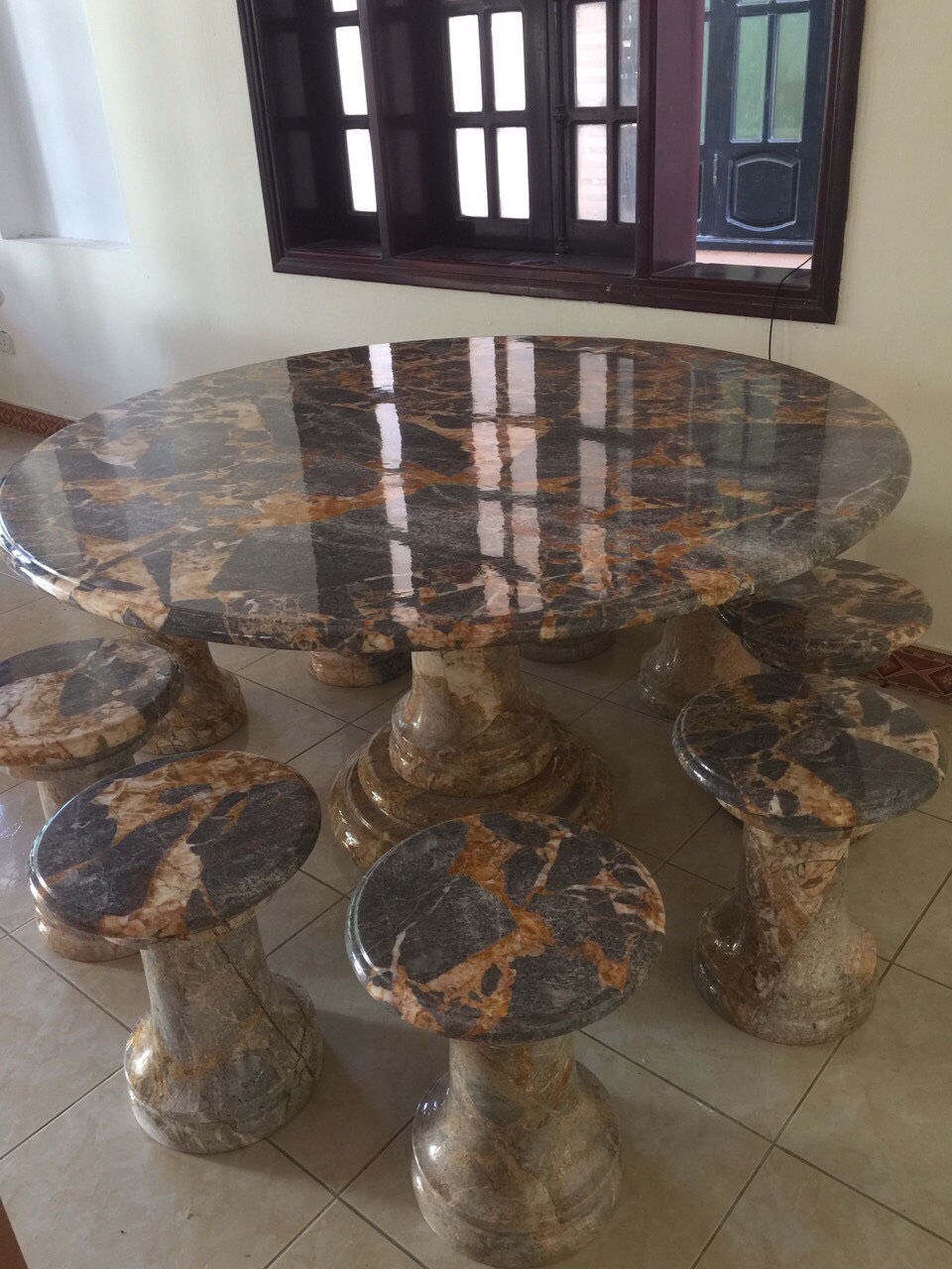 +Mỗi bộ bàn đá tự nhiên sẽ có những vân đá khác nhau. Khách hàng có thắc mắc hay yêu cầu gì thì liên hệ trực tiếp sđt trên