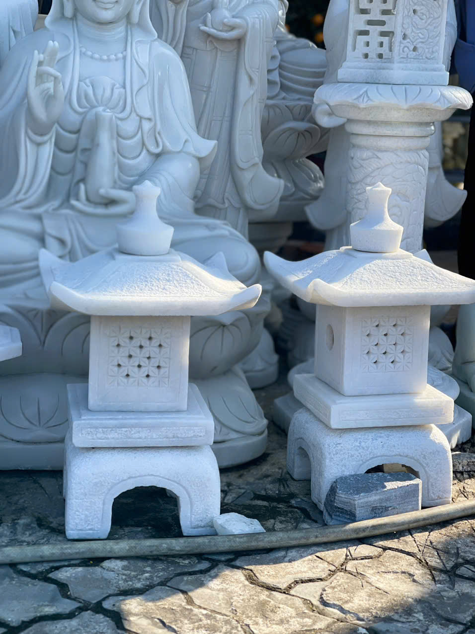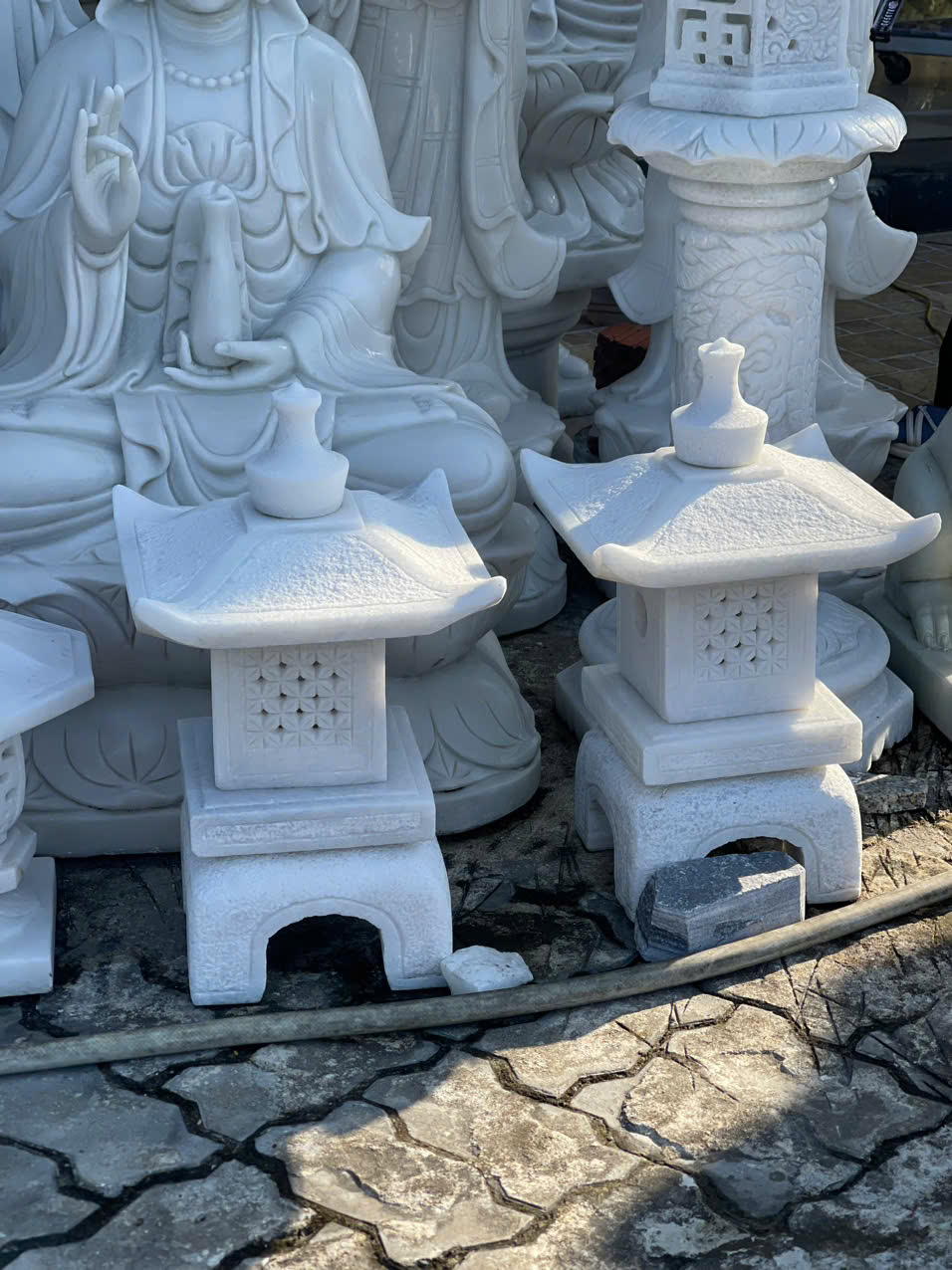 Ánh sáng từ ngọn nến trên chân đèn đá trắng tượng trưng cho sự tốt lành, may mắn và sự hiện diện của tổ tiên, thần linh, mang lại sự ấm áp cho gia đình.