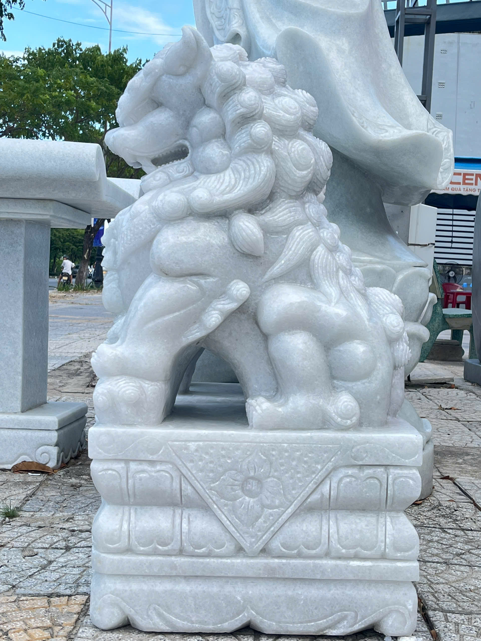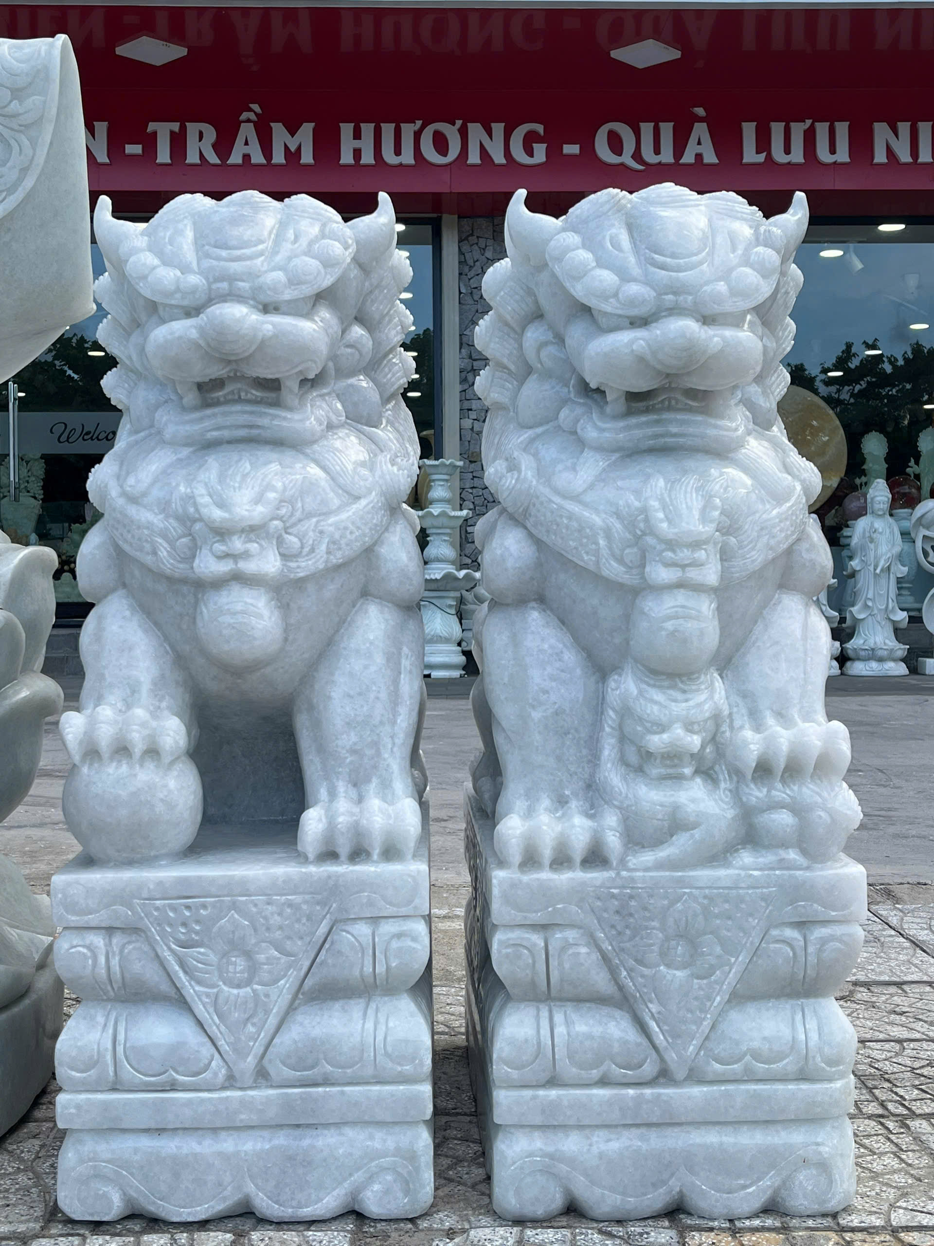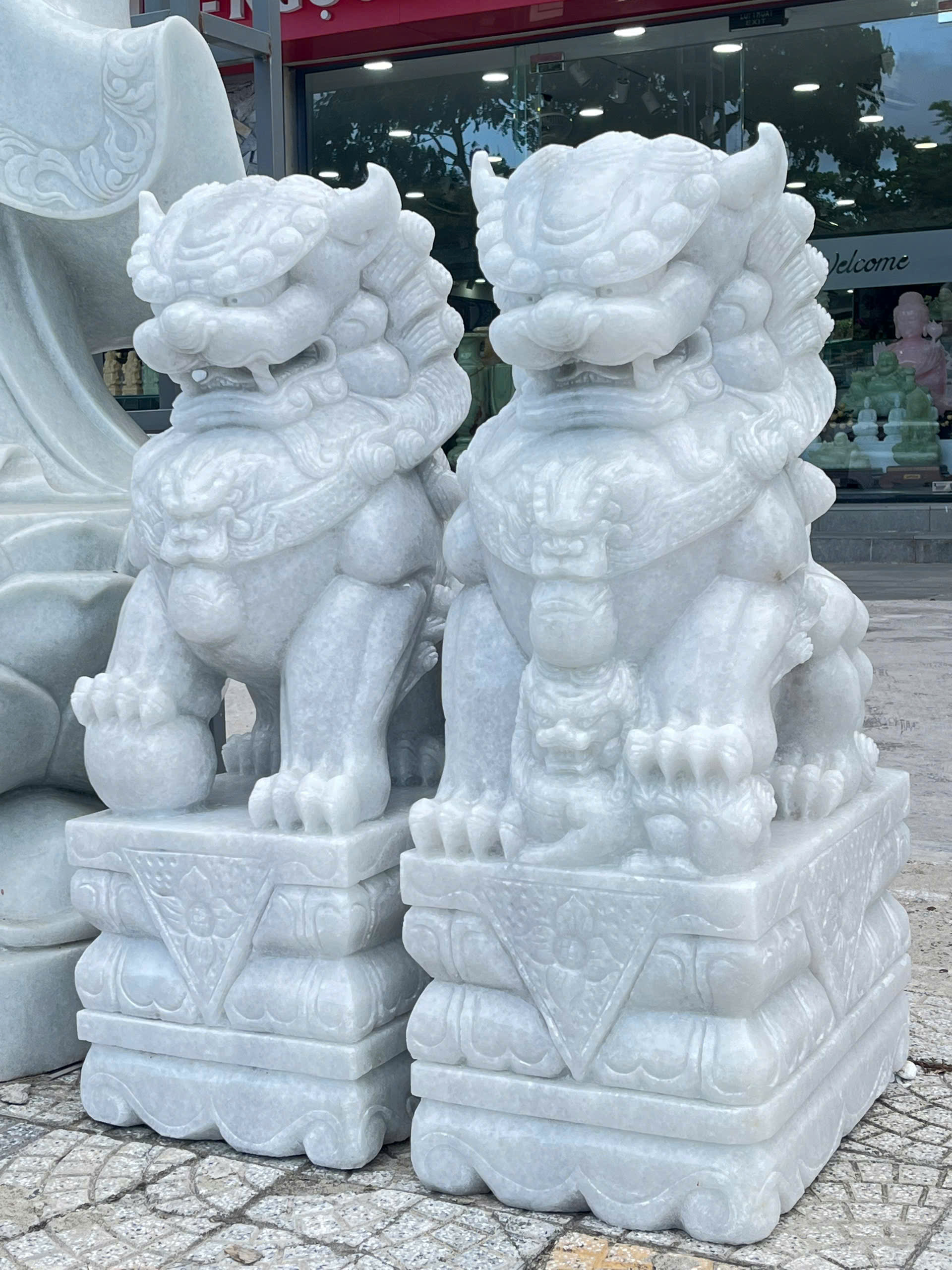 Cặp kỳ lân đá trắng cao 103cm ngang 36cm dài 43cm
