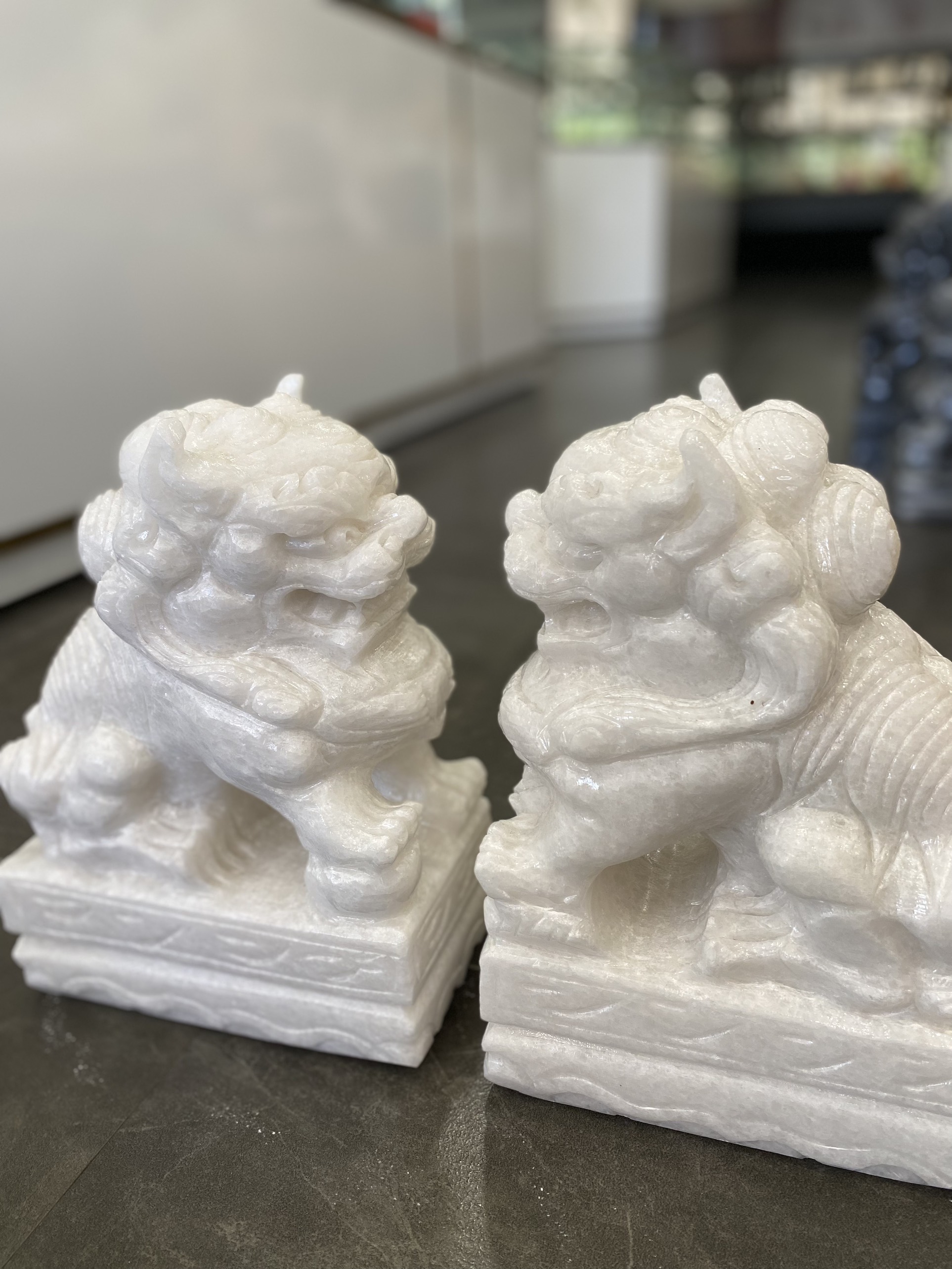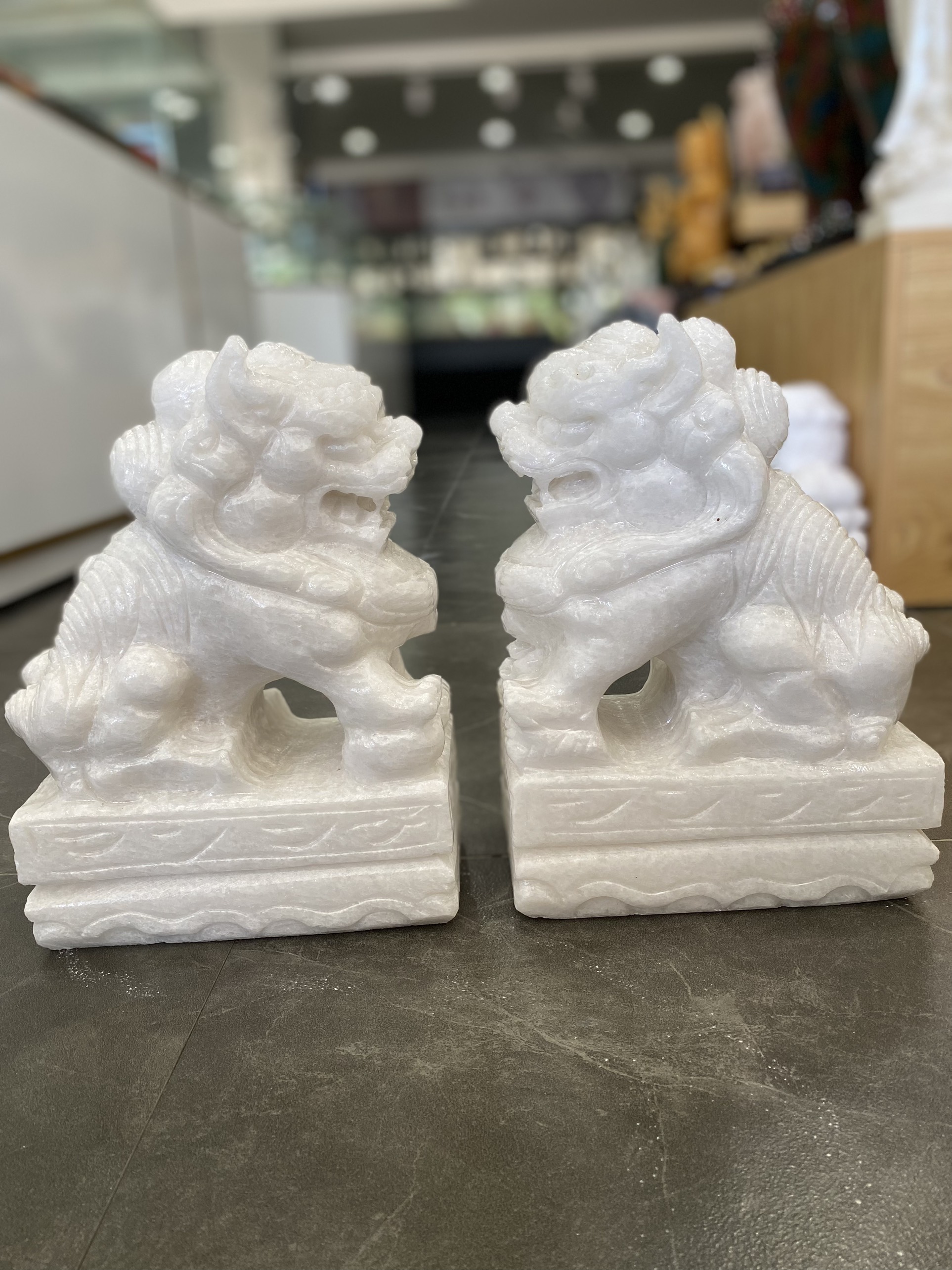 Cặp kỳ lân đá trắng cao 25cm ,ngang 17cm là vật phẩm chiêu tài lộc , may mắn tài lộc