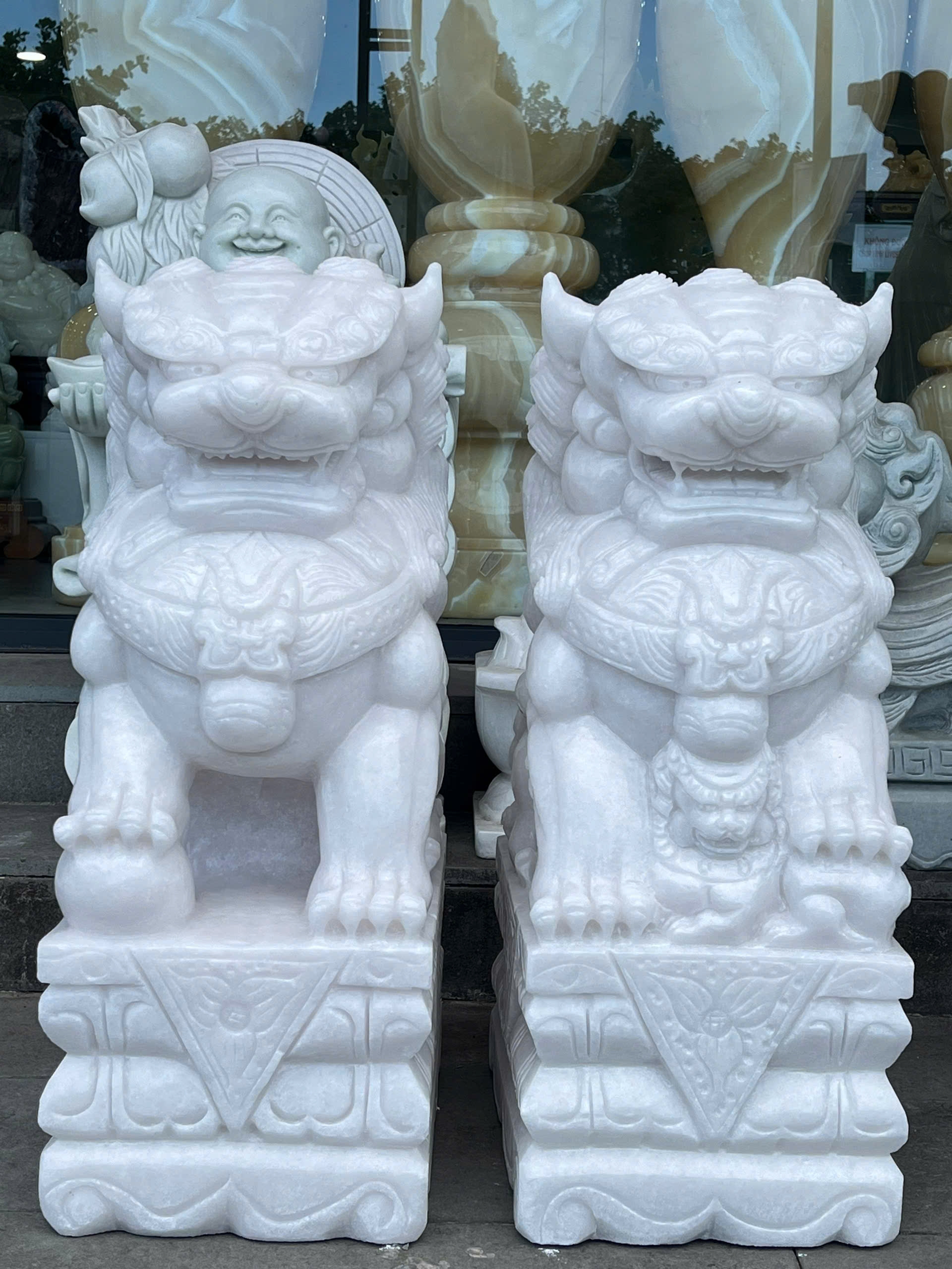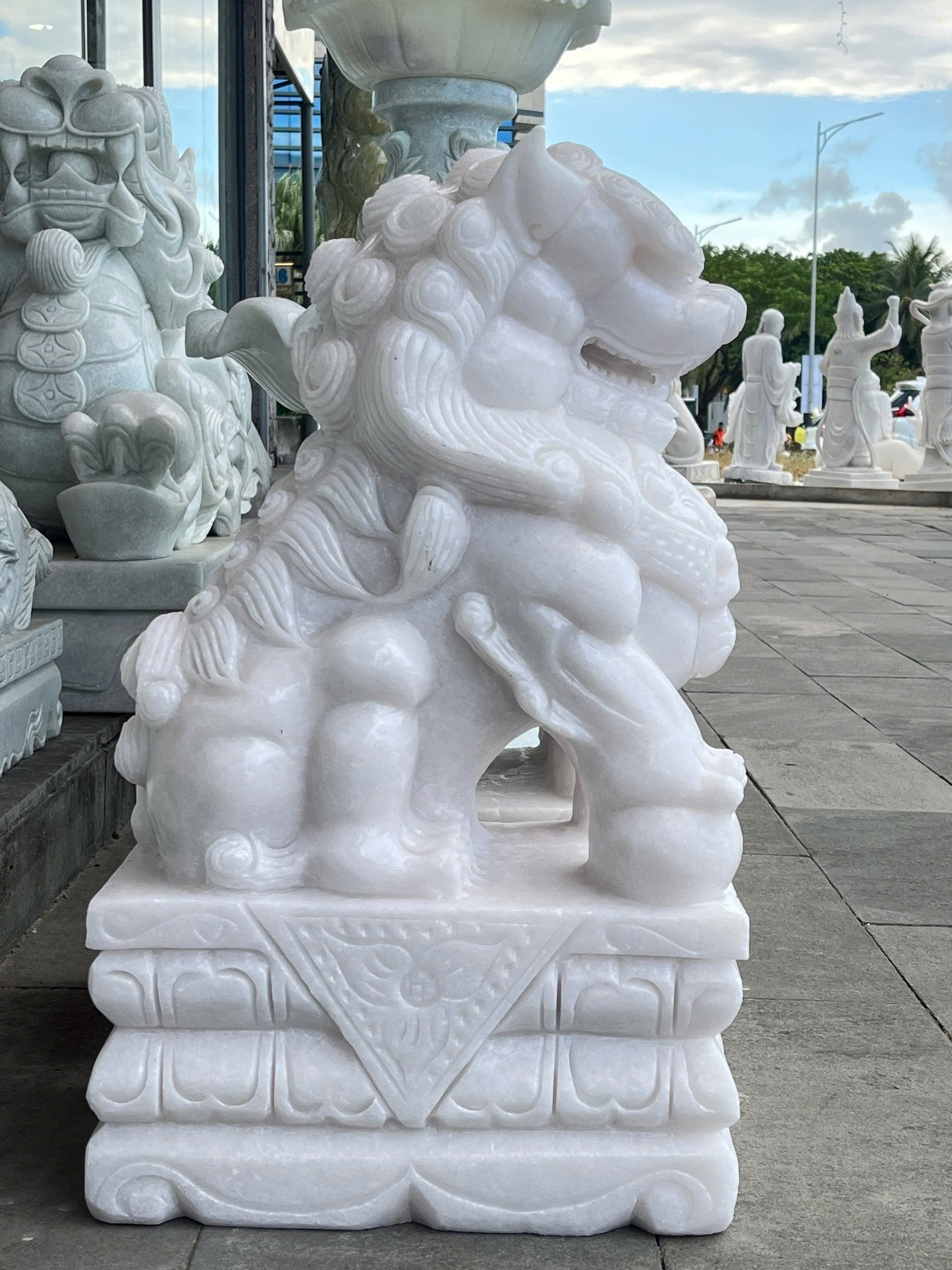 Cặp kỳ lân đá trắng cao 73cm ngang 28cm dài 43cm