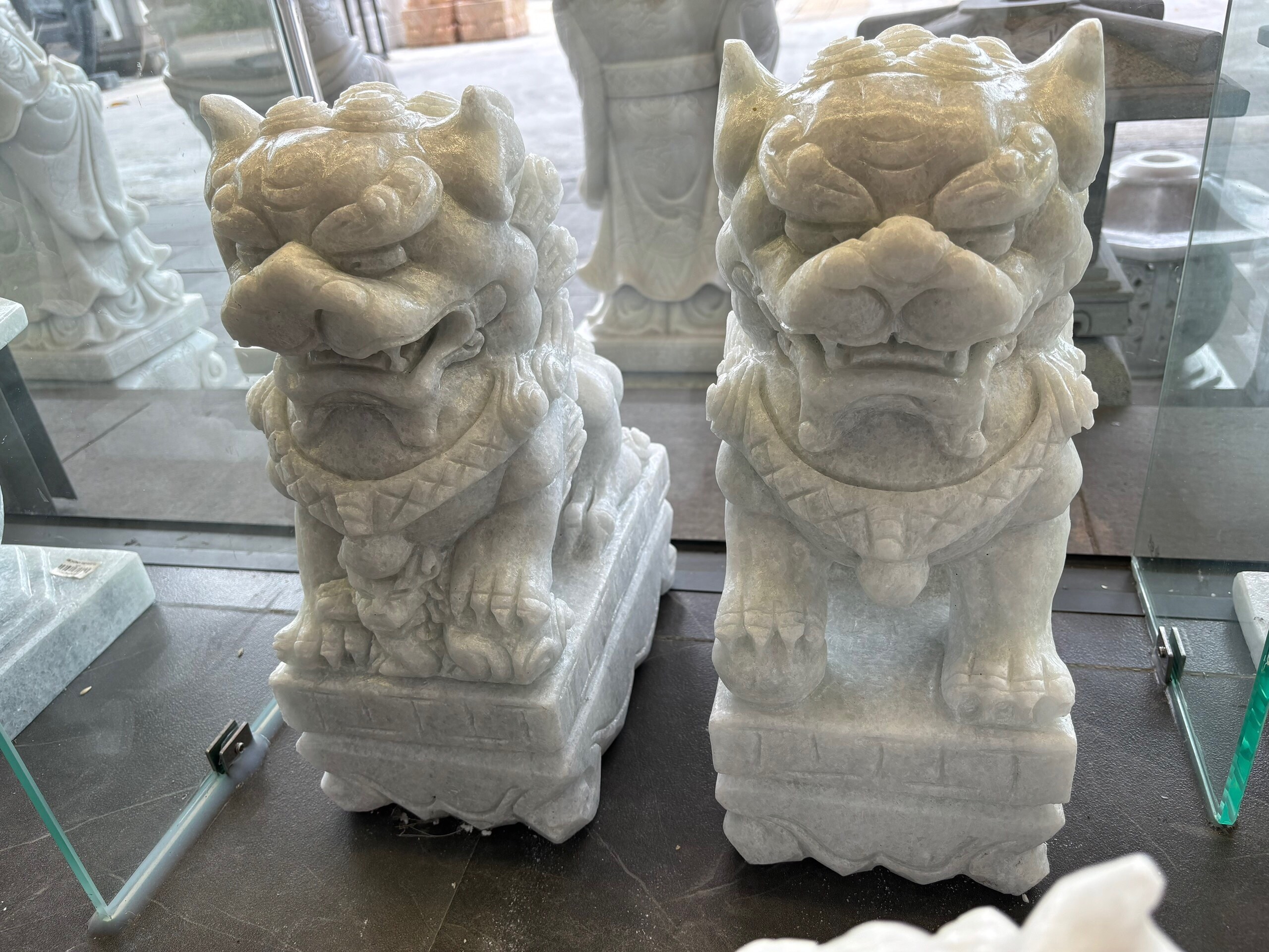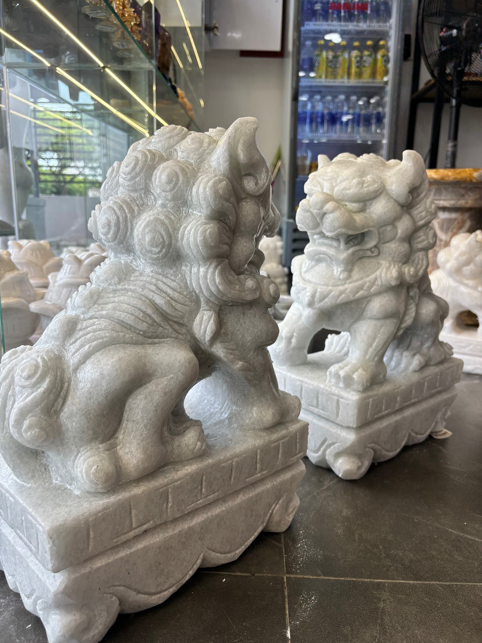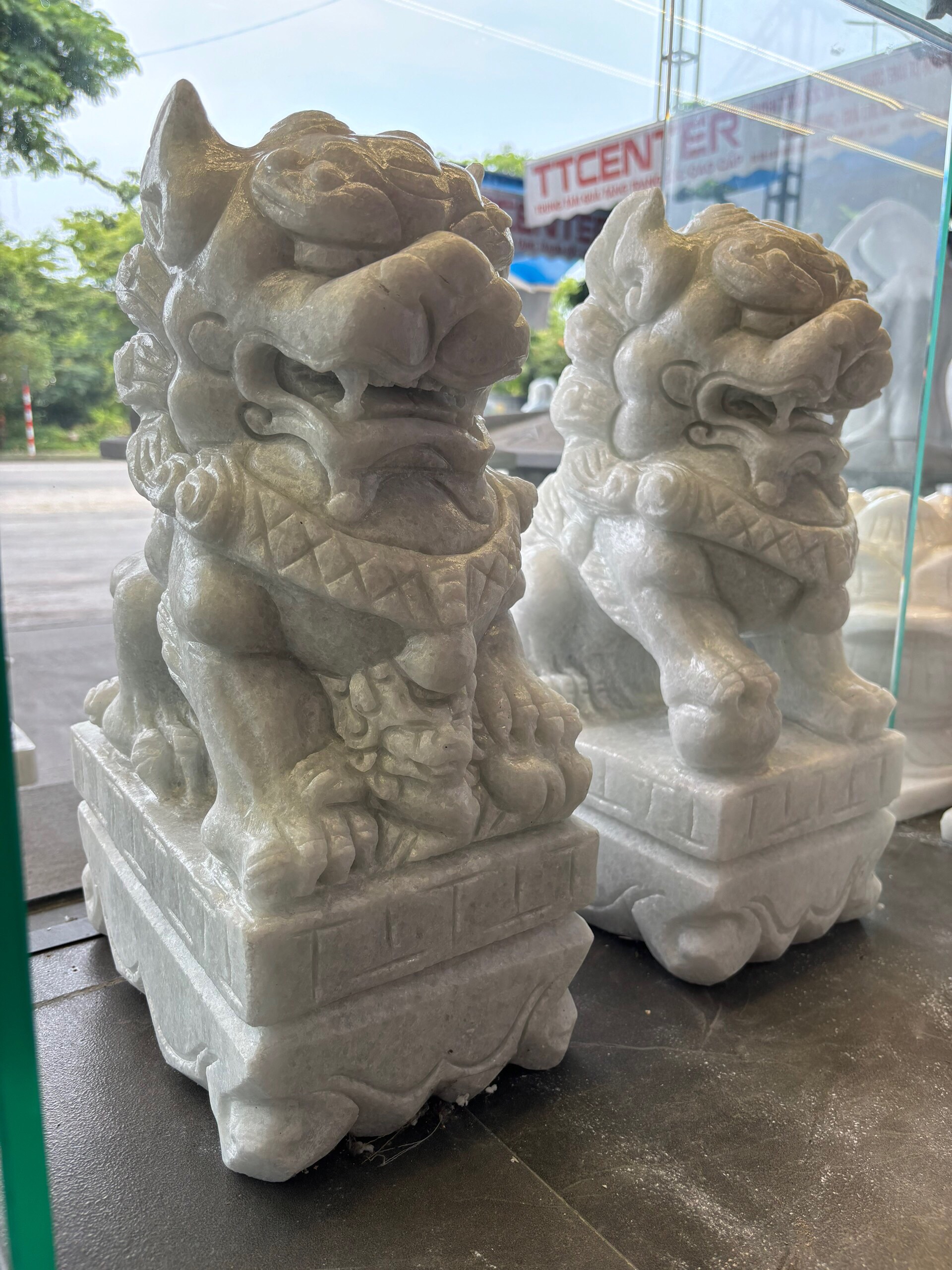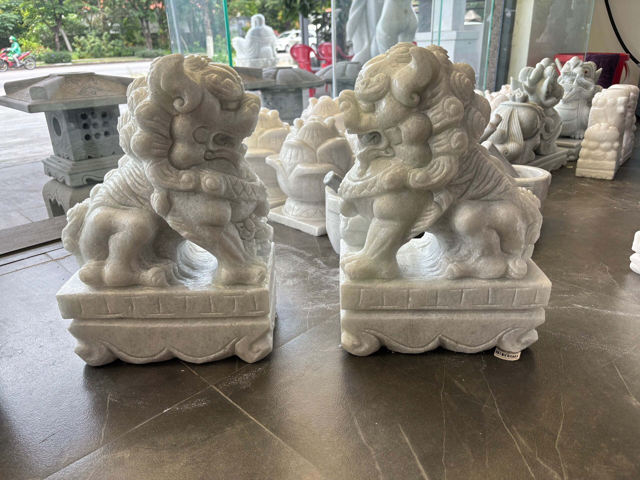 Cặp kỳ lân đá trắng nguyên khối cao 42cm dài 28cm ngang 16cm