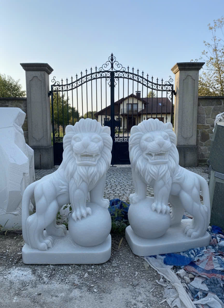 • Cặp sư tử đá trắng là vật phẩm phong thủy quyền năng, mang ý nghĩa trấn trạch, trừ tà và bảo vệ gia chủ, đồng thời thu hút tài lộc, sự thịnh vượng. Được chế tác từ đá cẩm thạch trắng, tượng toát lên sự sang trọng, uy nghi, thường đặt trước cổng nhà, biệt thự hoặc công ty để hóa giải sát khí và khẳng định đẳng cấp.