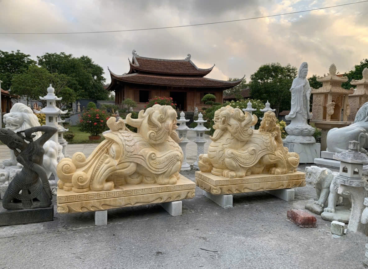 Cặp Tỳ Hưu đá màu cà rốt (vàng cam/vàng nhạt) là vật phẩm phong thủy mạnh mẽ, kết hợp ý nghĩa chiêu tài, giữ của (Tỳ Hưu) và năng lượng may mắn, thịnh vượng (màu vàng). Linh vật này giúp thu hút tài lộc, trấn trạch trừ tà, mang lại sự bình an và phát triển công danh, sự nghiệp cho gia chủ.
