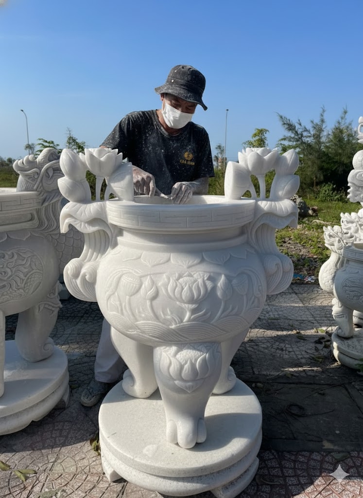 + Chất liệu : đá trắng nguyên khối