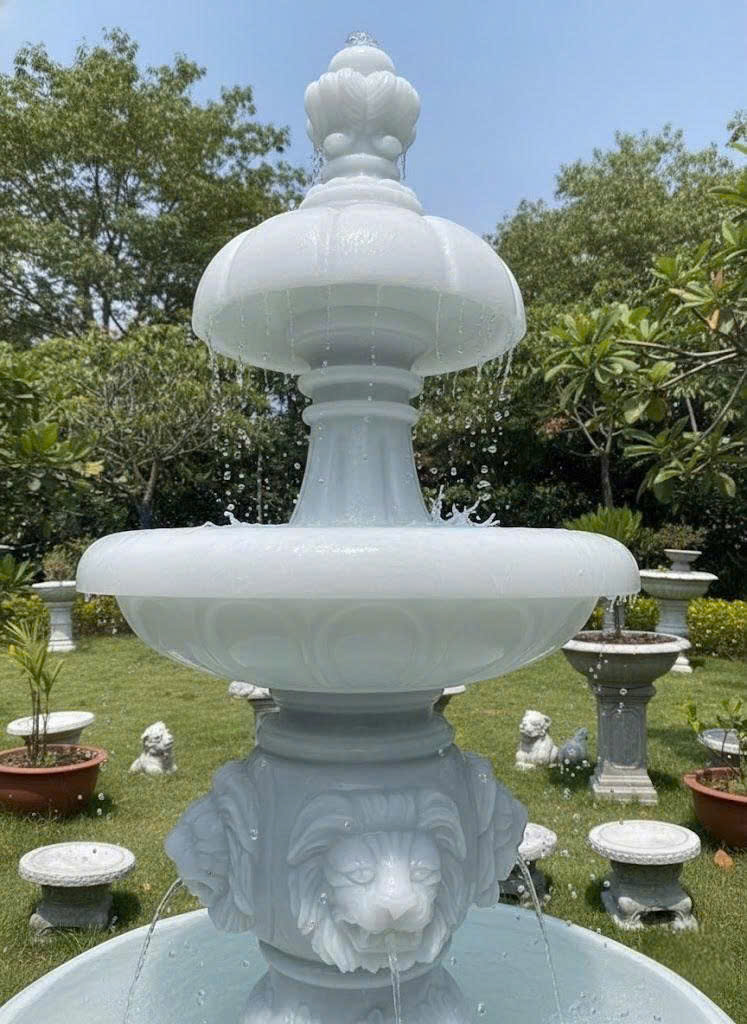 • thủy luân nước đá trắng nghệ thuật đặt trong khuôn viên sân vườn.