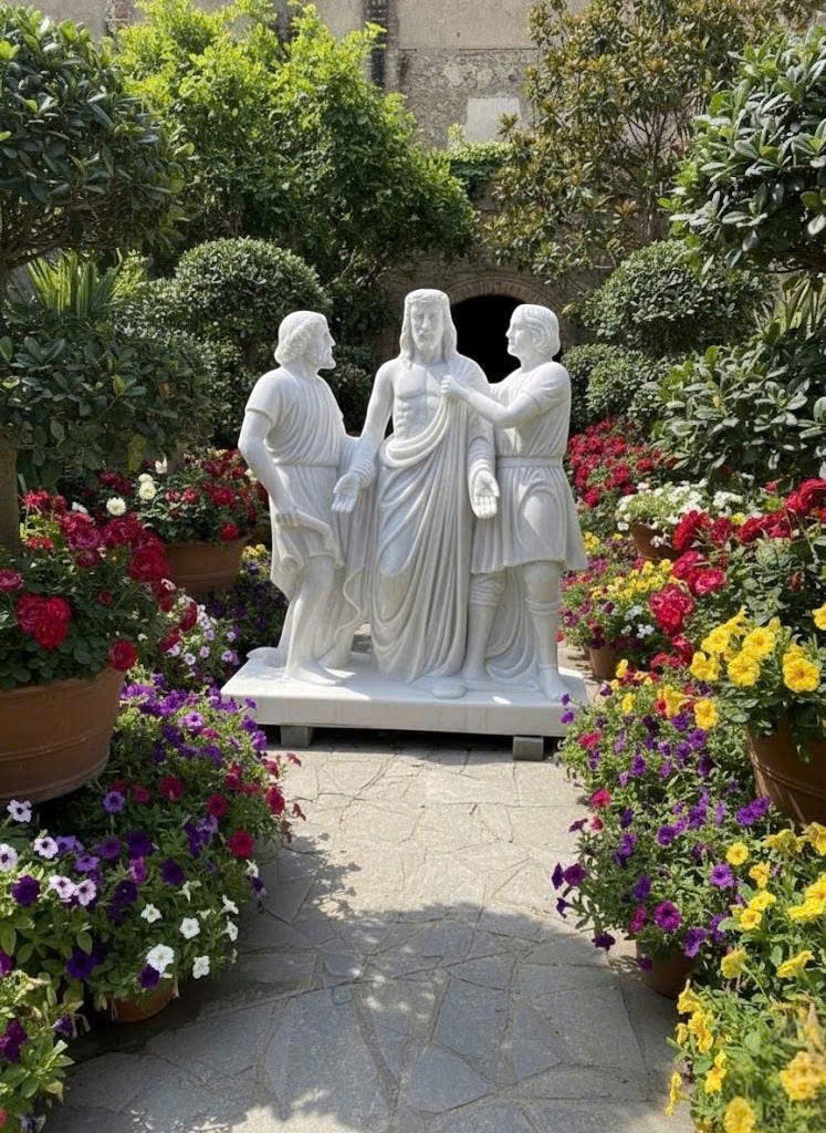 +Tượng đá trắng mang vẻ đẹp trang nghiêm, phù hợp đặt trong khuôn viên nhà thờ, không gian cầu nguyện hoặc vườn tưởng niệm.