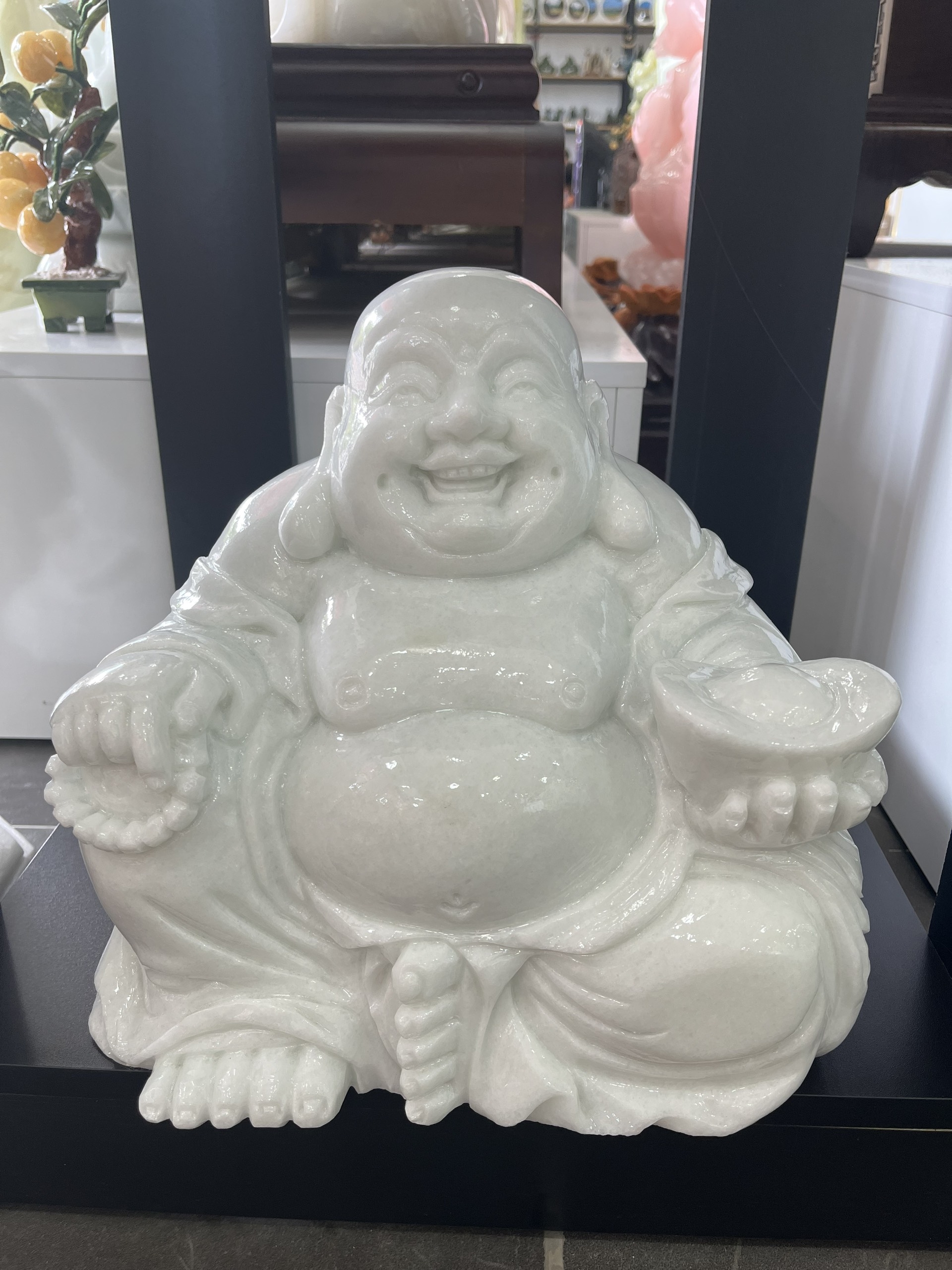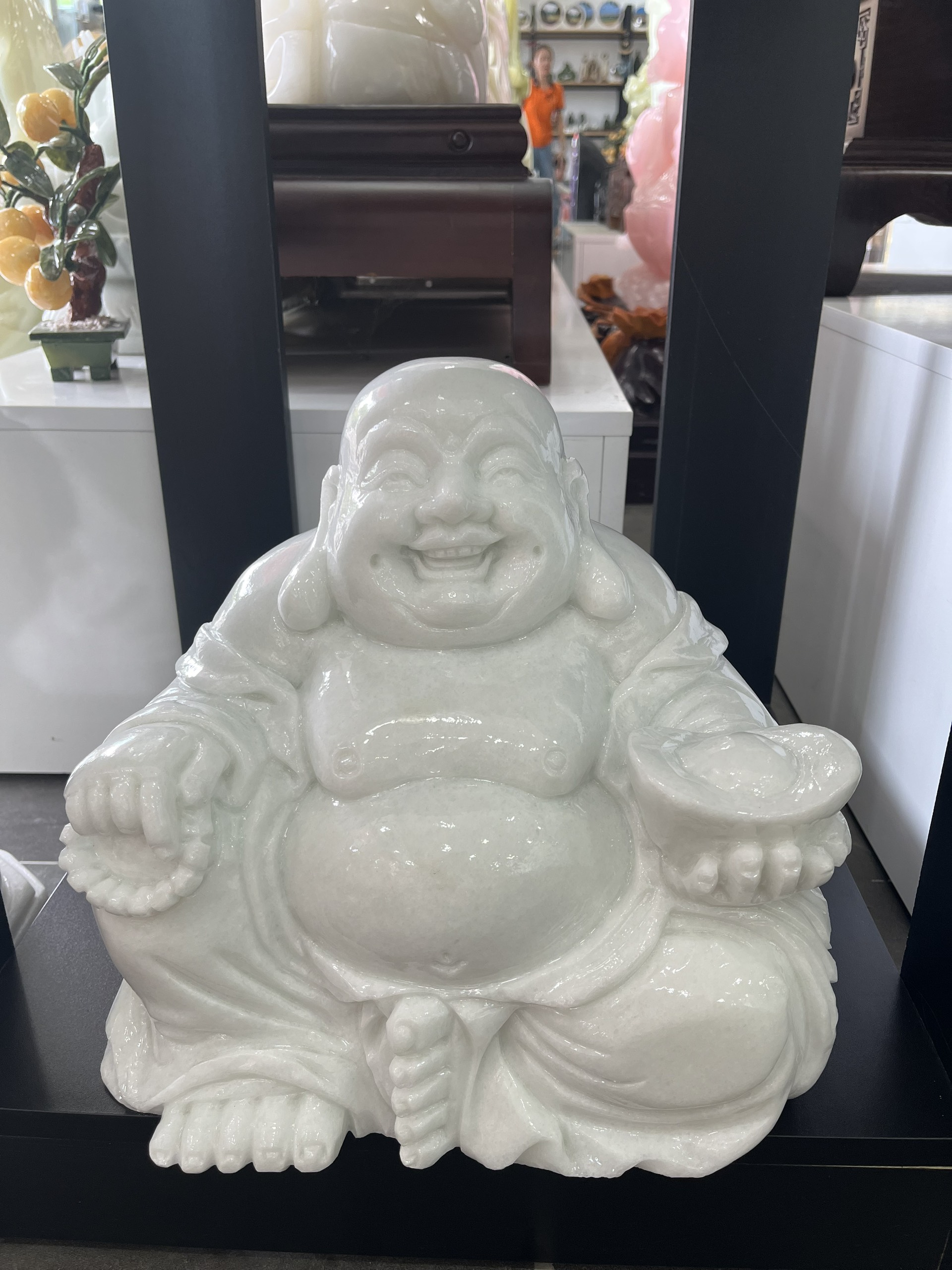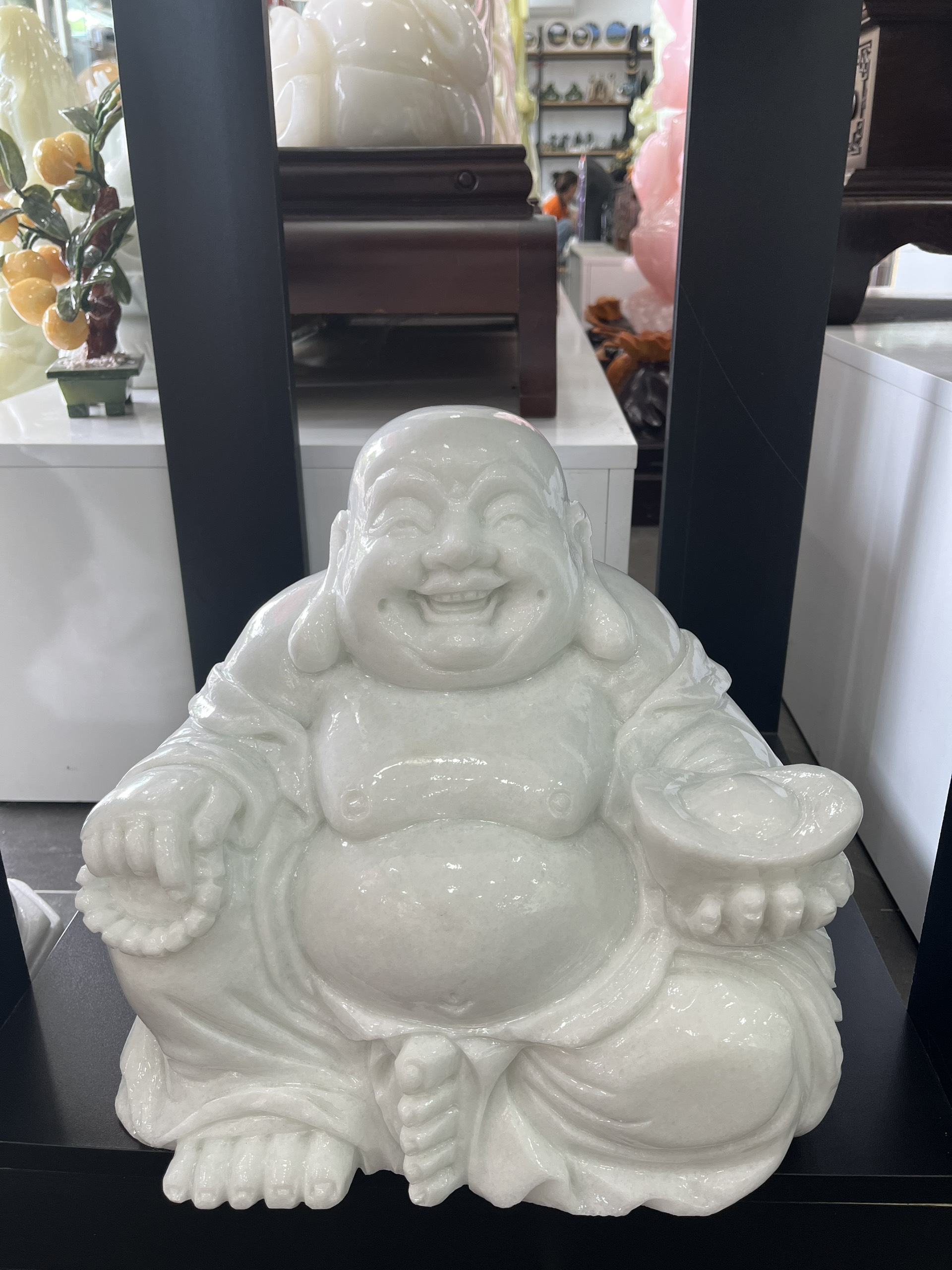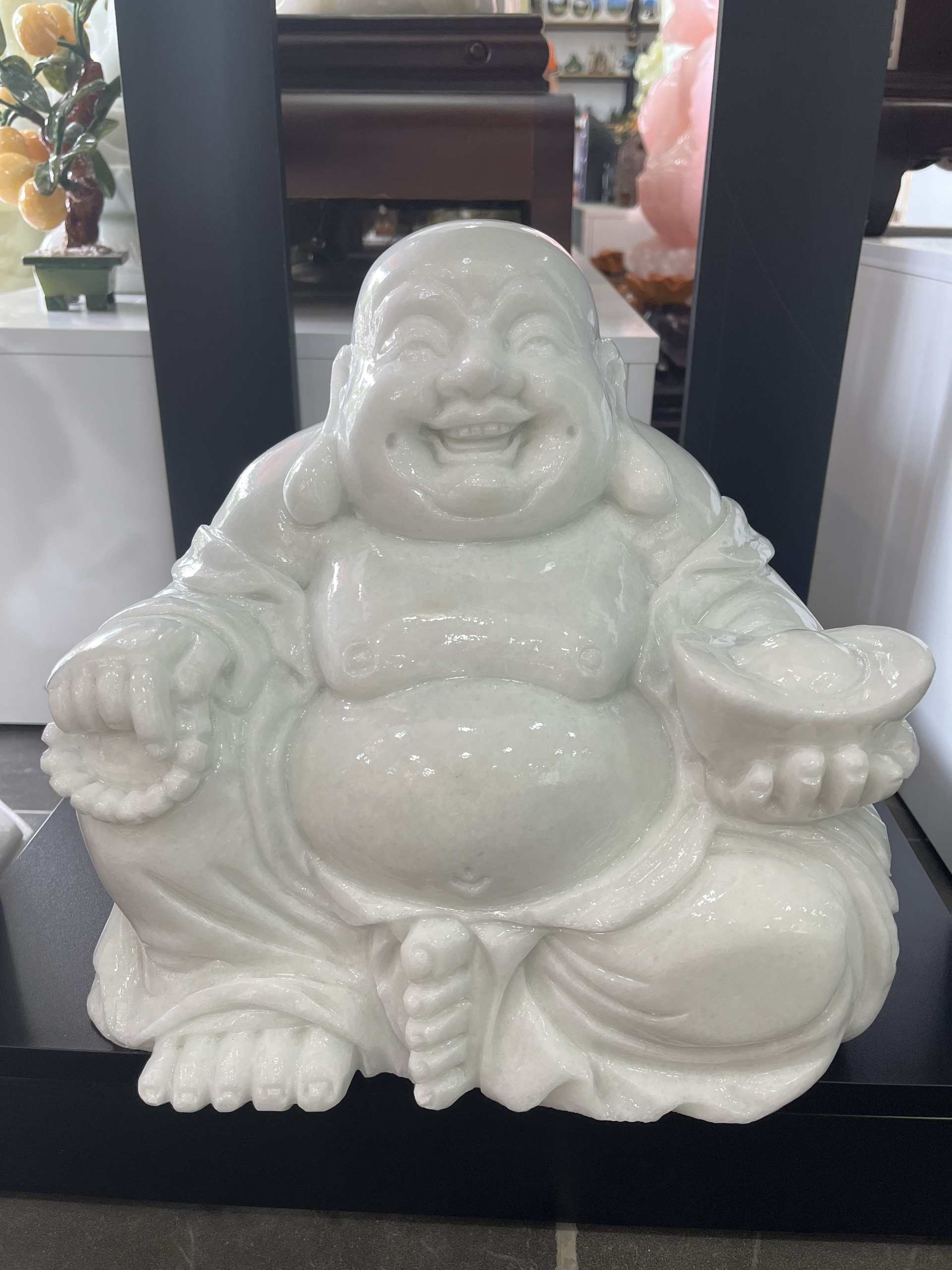 Tượng di lặc đá trắng nguyên khối 30cm vui vẻ hoan hỉ là vật phẩm phong thuỷ chiêu tài lộc
