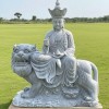 Tượng Địa Tạng Vương Bồ Tát cưỡi Đề Thính Đá Trắng xanh Nguyên Khối cao 1.5m T313