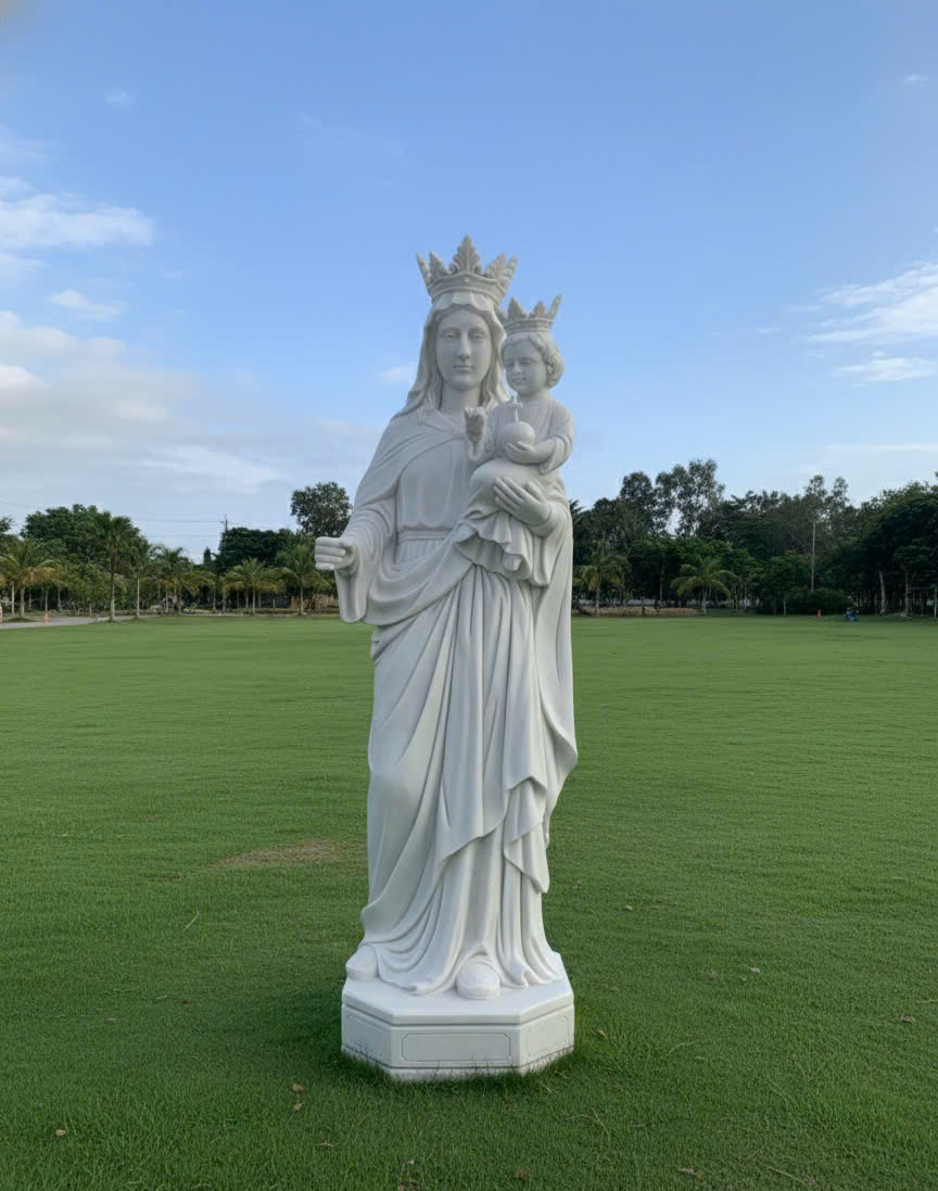 Chất liệu: Đá trắng nguyên khối tự nhiên.