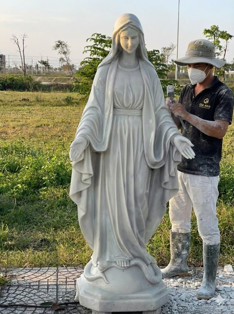 Tượng đức mẹ maria đá trắng biểu tượng của tình yêu, lòng nhân từ, sự che chở và bảo vệ