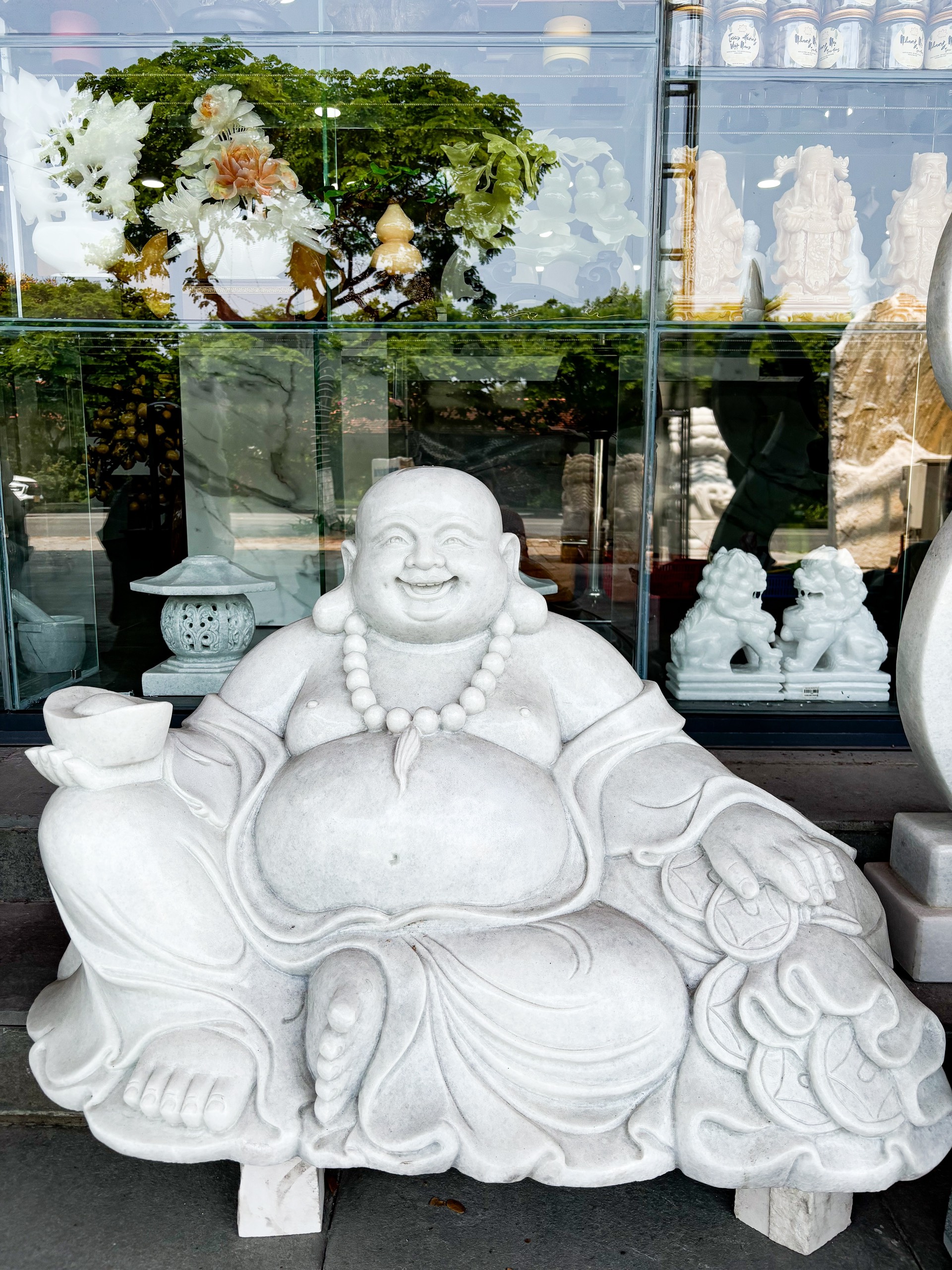 0 đánh giá cho Tượng phật di lặc đá trắng nguyên khối cao 65cm ngang 1M T057