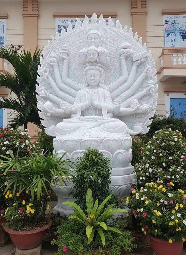 Tượng Phật Quan Âm Thiên Thủ Thiên Nhãn đá trắng nguyên khối