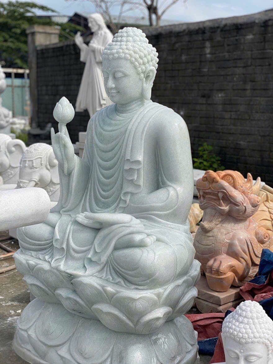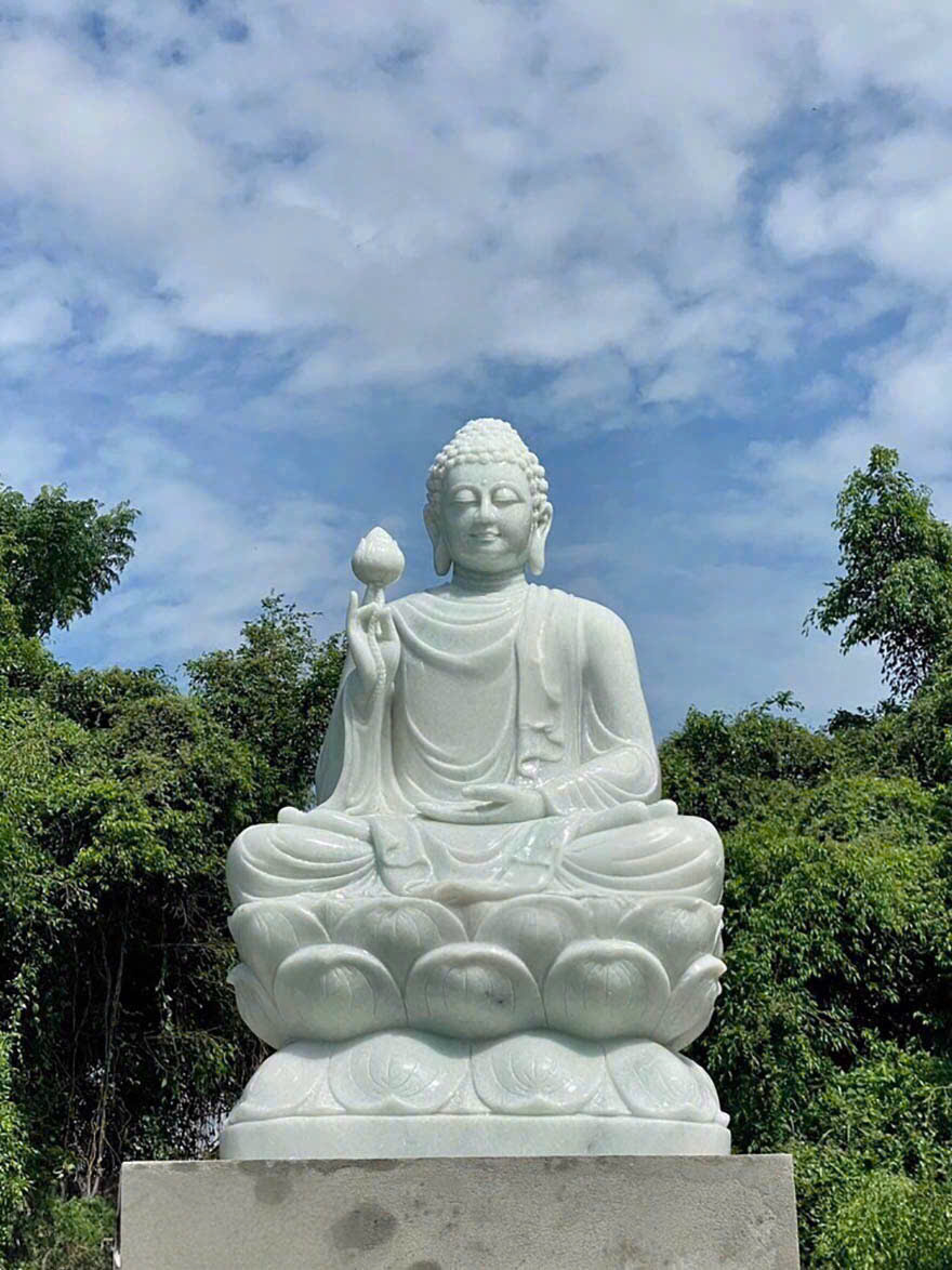 Tượng  phật thích ca ngồi được chế tác tinh xảo từ đá trắng nguyên khối tự nhiên.biểu trưng cho sự thanh tịnh và giác ngộ. thể hiện thần thái từ bi,an nhiên và trí tuệ của Đức Phật