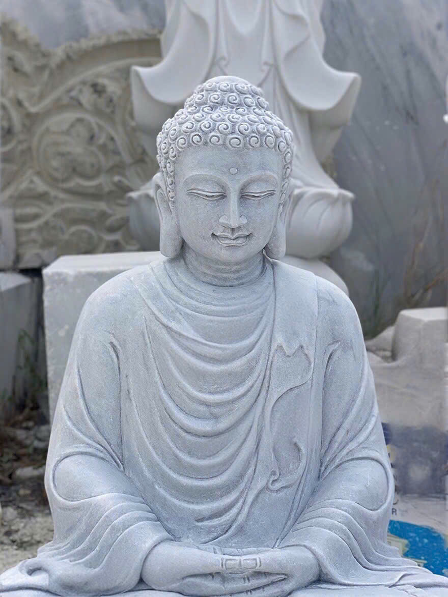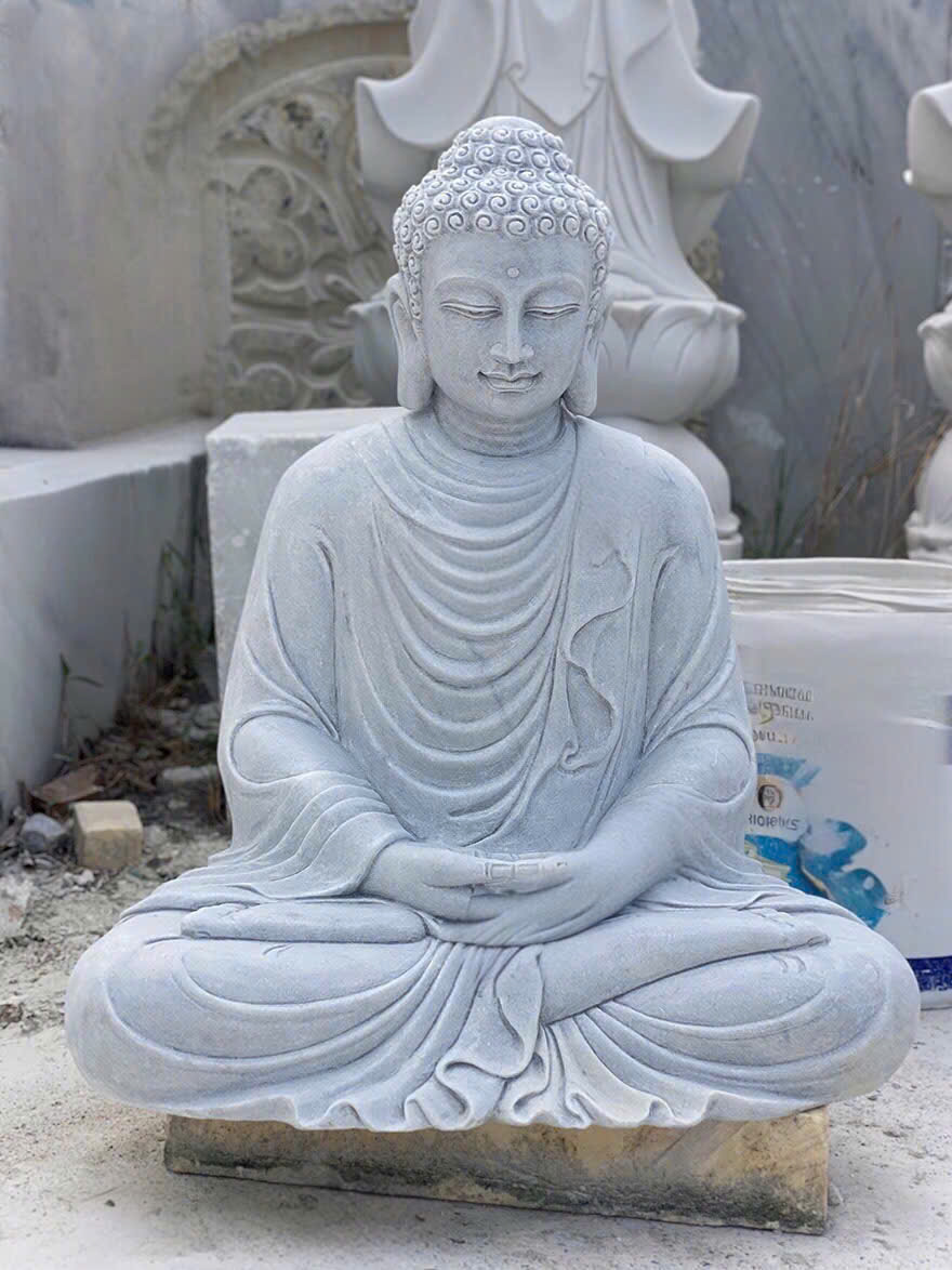 Tượng phật thích ca ngồi được chế tác tinh xảo từ đá trắng nguyên khối tự nhiên.biểu trưng cho sự thanh tịnh và giác ngộ. thể hiện thần thái từ bi, an nhiên và trí tuệ của Đức Phật