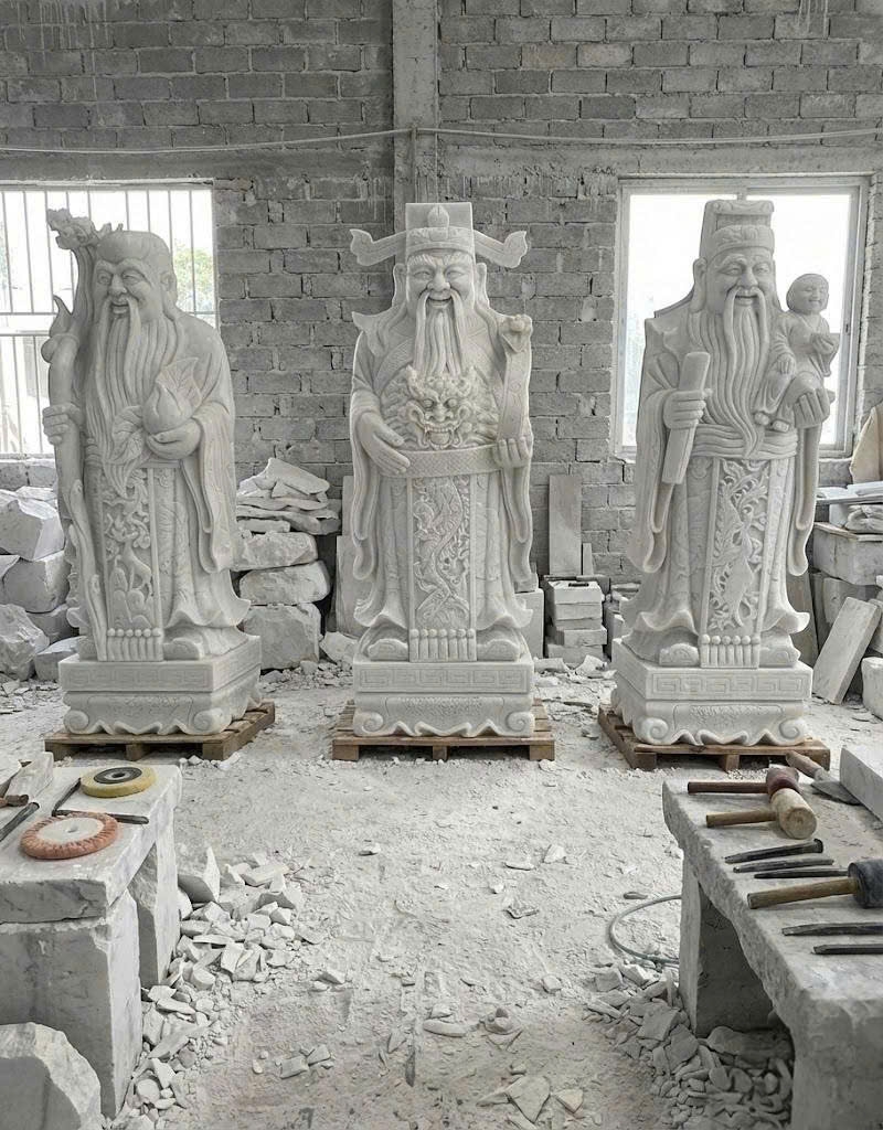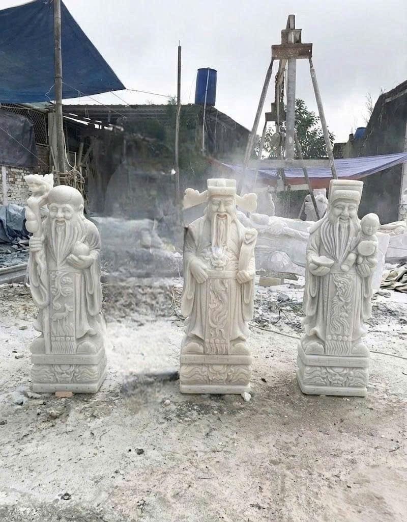 Tượng phúc lộc thọ đá trắng nguyên khối cao 1.2m