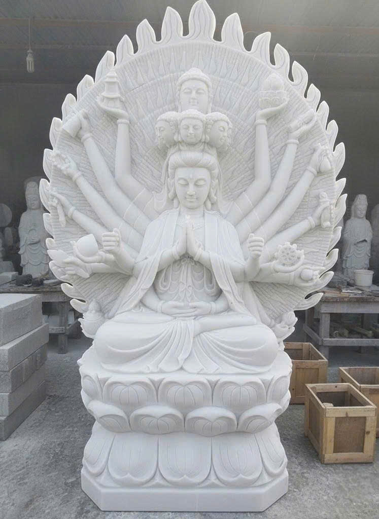 Tượng Quan Âm Bồ Tát Thiên Thủ Thiên Nhãn đá trắng nguyên khối