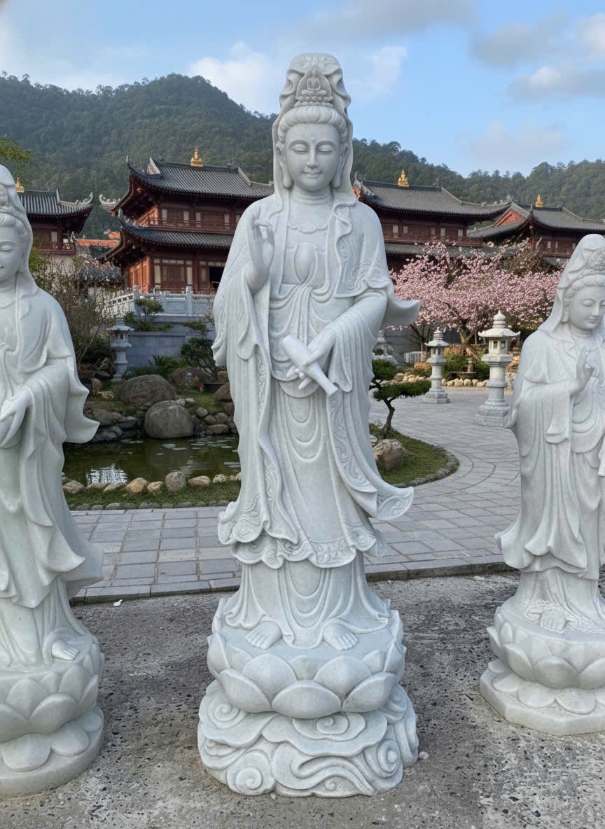 0 đánh giá cho Tượng quan âm đá trắng nguyên khối cao 1m8 T300