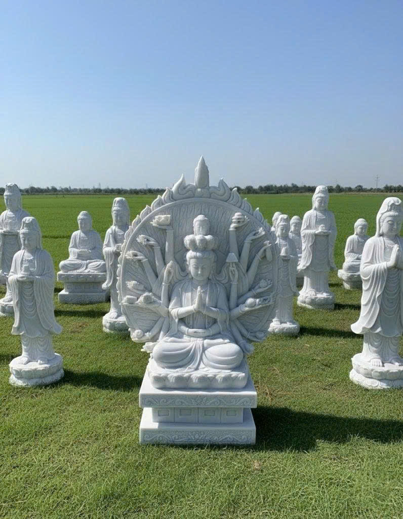 Tượng Quan Âm Thiên Thủ Thiên Nhãn được chế tác từ đá trắng nguyên khối