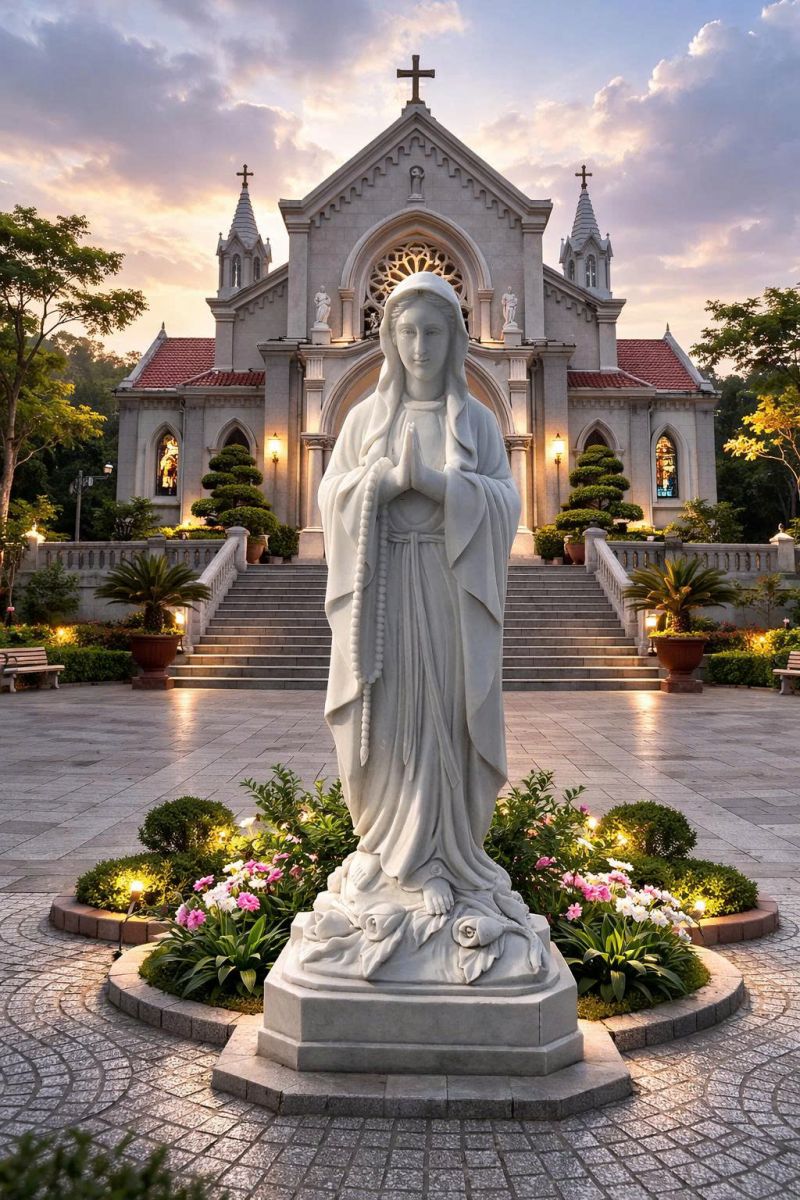Tượng Đức Mẹ Lộ Đức: Khắc họa sự thành tâm, tôn nghiêm trong tư thế chắp tay cầu nguyện.