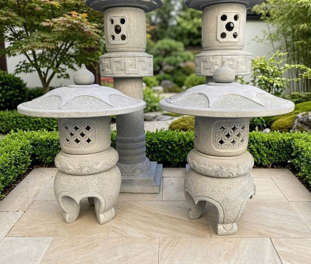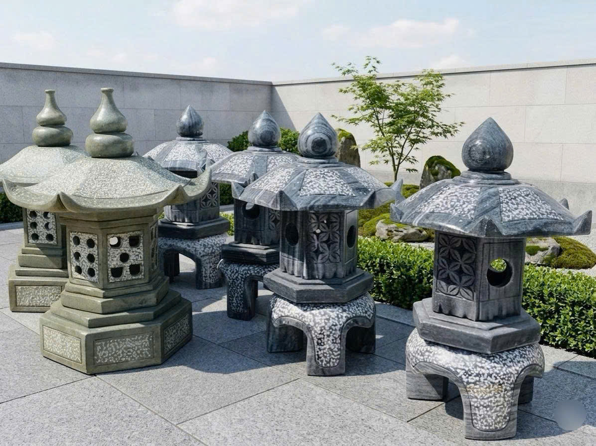 Đèn đá phong cách Zen (Nhật Bản): Tối giản, tinh tế, là điểm nhấn hoàn hảo cho sân vườn biệt thự.