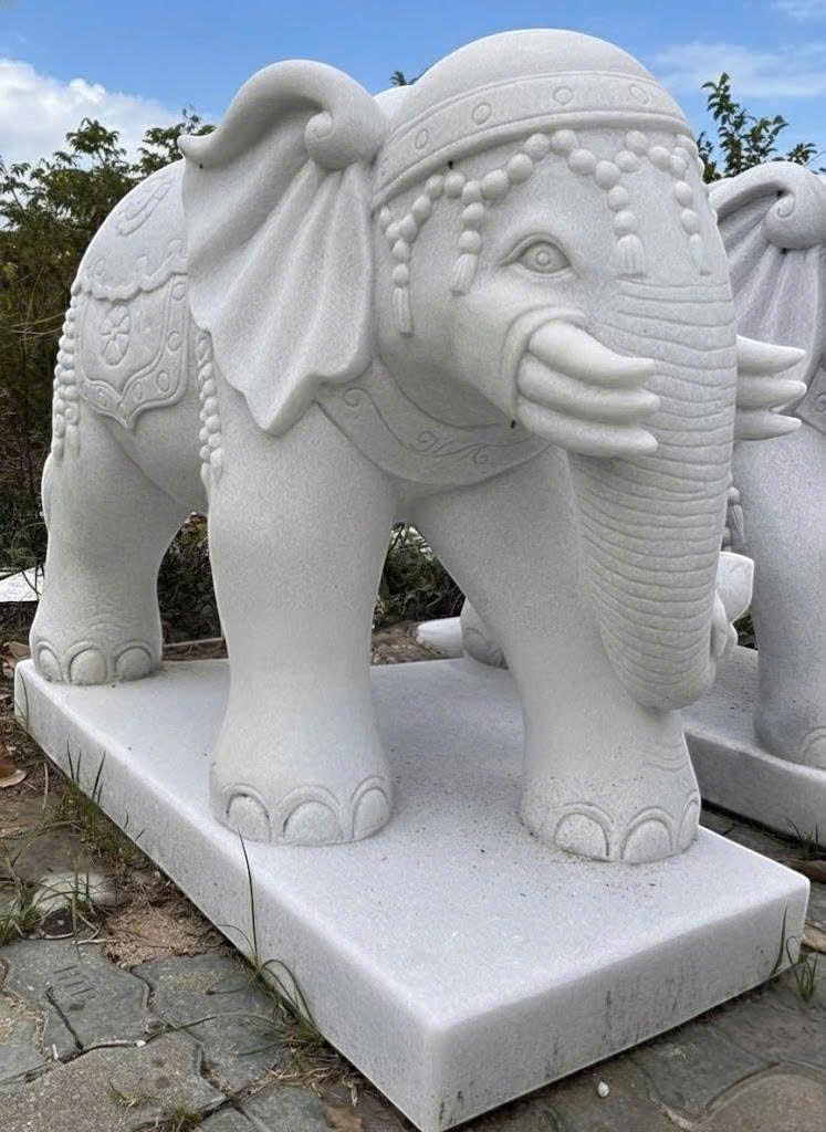 Đặc biệt, khi sử dụng tượng voi đá trắng nguyên khối, giá trị thẩm mỹ và ý nghĩa càng được nâng tầm, giúp không gian trở nên trang trọng và đẳng cấp hơn.